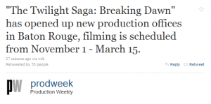 Hey Traumadas de acordo com o twitter da Production Weekly, as filmagens de Amanhecer (Breaking Dawn) irão durar cerca de 4 meses: Dia 1 de novembro à 15 de março.