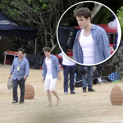 Nesta sexta-feira, 12, Robert Pattinson e Kristen Stewart filmaram as cenas da lua de mel de Edward e Bella no novo filme da saga "Crepúsculo", "Amanhecer". A cena aconteceu na praia do Saco de Mamanguá, em Paraty, Costa Verde do Rio, em frente à casa escolhida pela produção para ser a Ilha de Esme, uma ilha particular comprada pelo 'pai' de Edward, Carlisle, para a mulher, Esme.